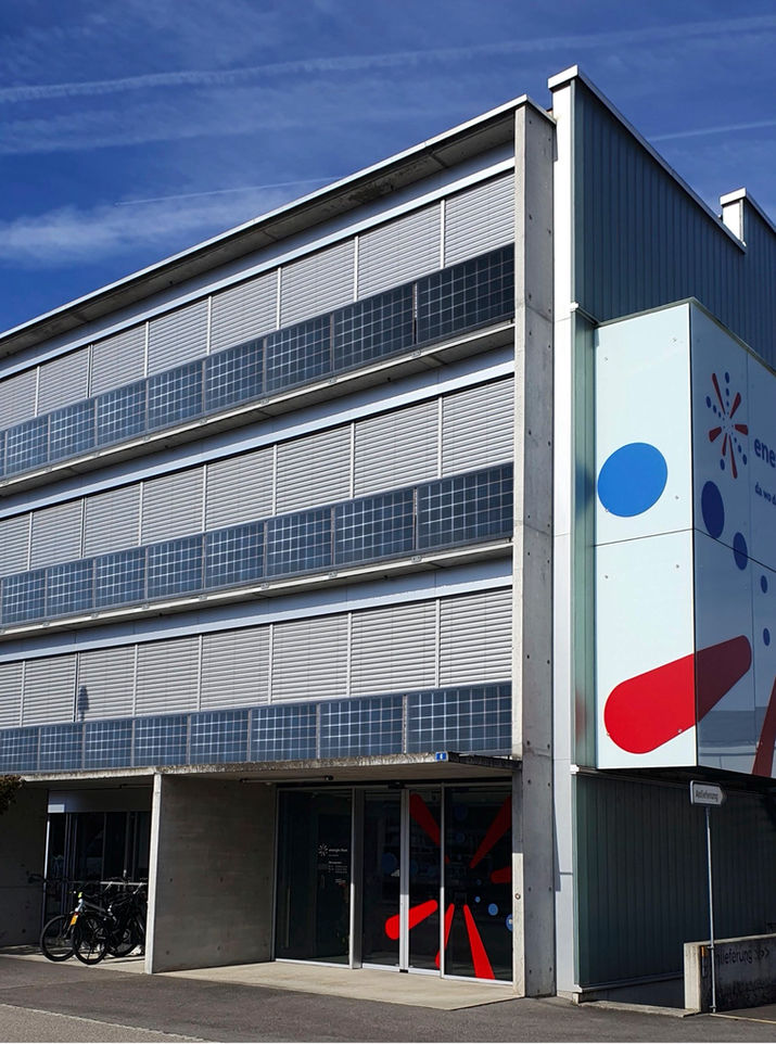 Das Energie- und Wasserversorgungs-unternehmen wollte sein Betriebsgebäude als Vorbild für eine saubere Stromproduktion modernisieren und entschied sich daher, die Staketengeländer der Südfassade durch Solargeländer zu ersetzen.